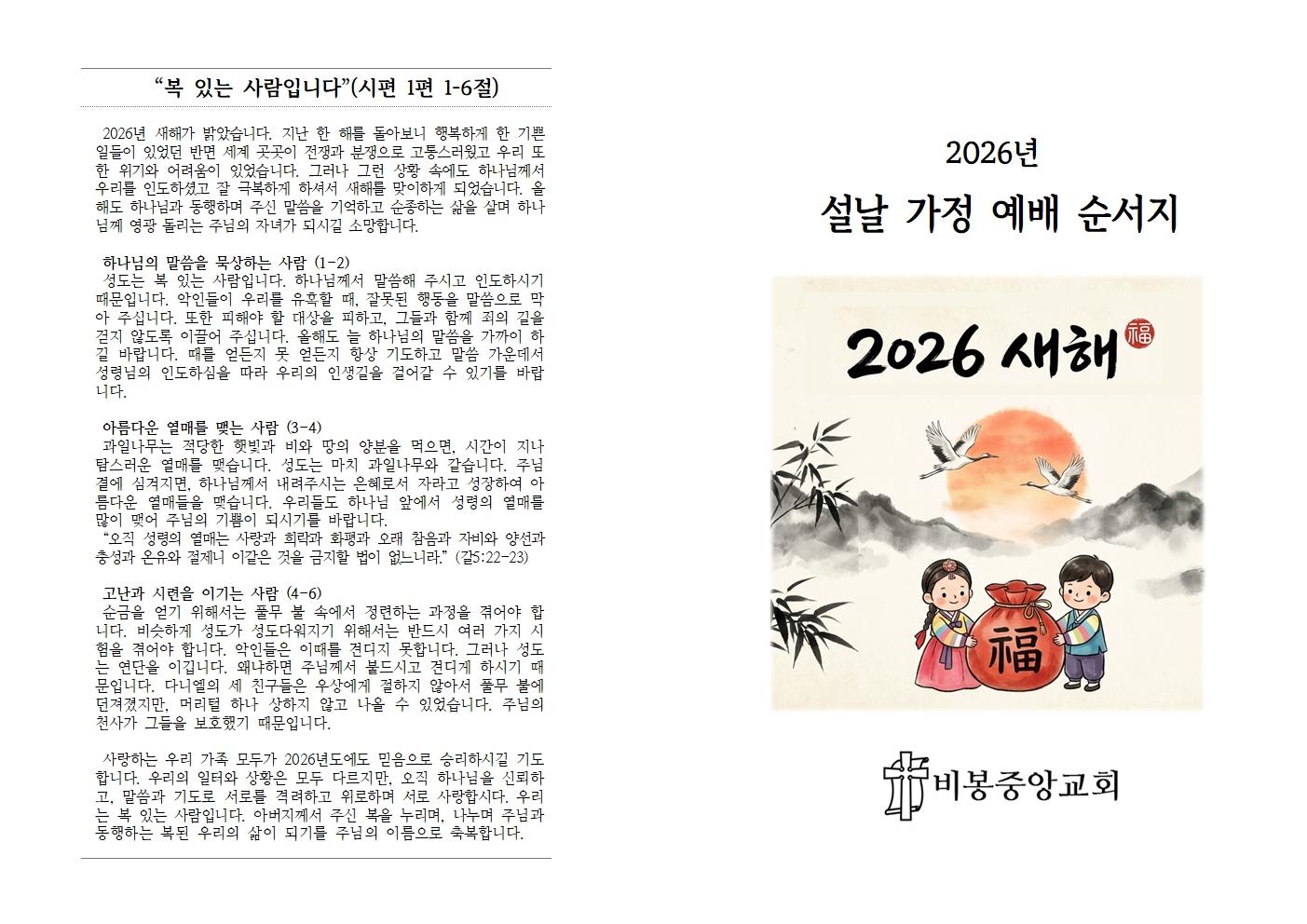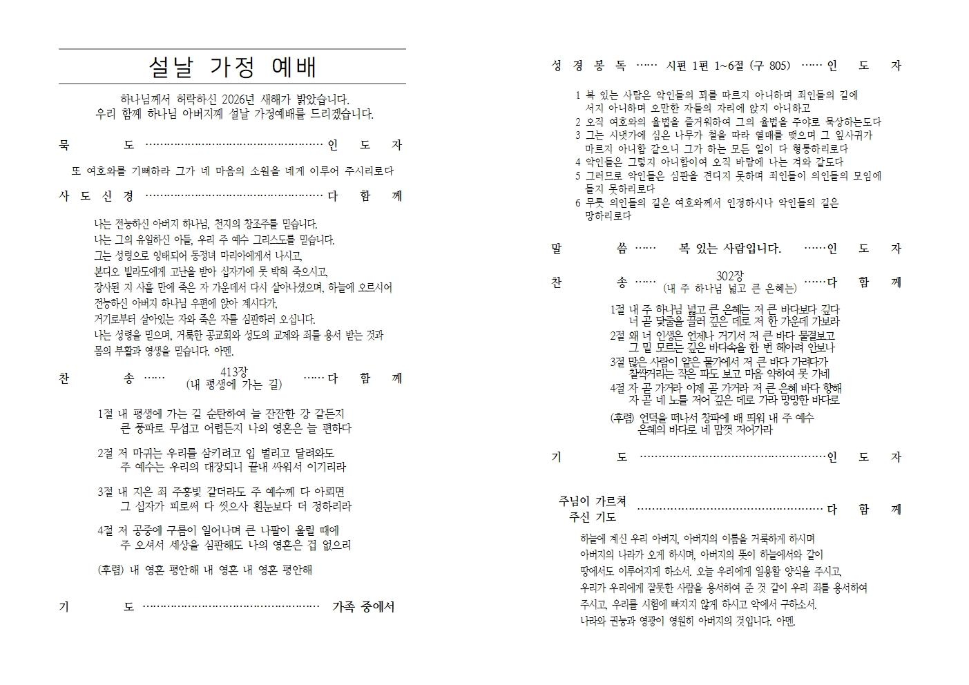 2026년 설날 가정예배 순서지